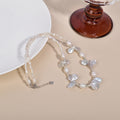The choker showcases baroque-shaped petals, each measuring approximately 8-9mm in width. Accentuating the petals are smaller mickey pearls, approximately 7-8mm in size, and delicate regeneration pearls, measuring 3-4mm. The necklace itself boasts a length of 40cm, with an additional 5cm extension chain for adjustable fit. The matching bracelet offers a charming length of 15cm, also including a 5cm extension chain for comfort and style. This set is designed to fit perfectly around your neck and wrist, adding a touch of vintage grace to any outfit.