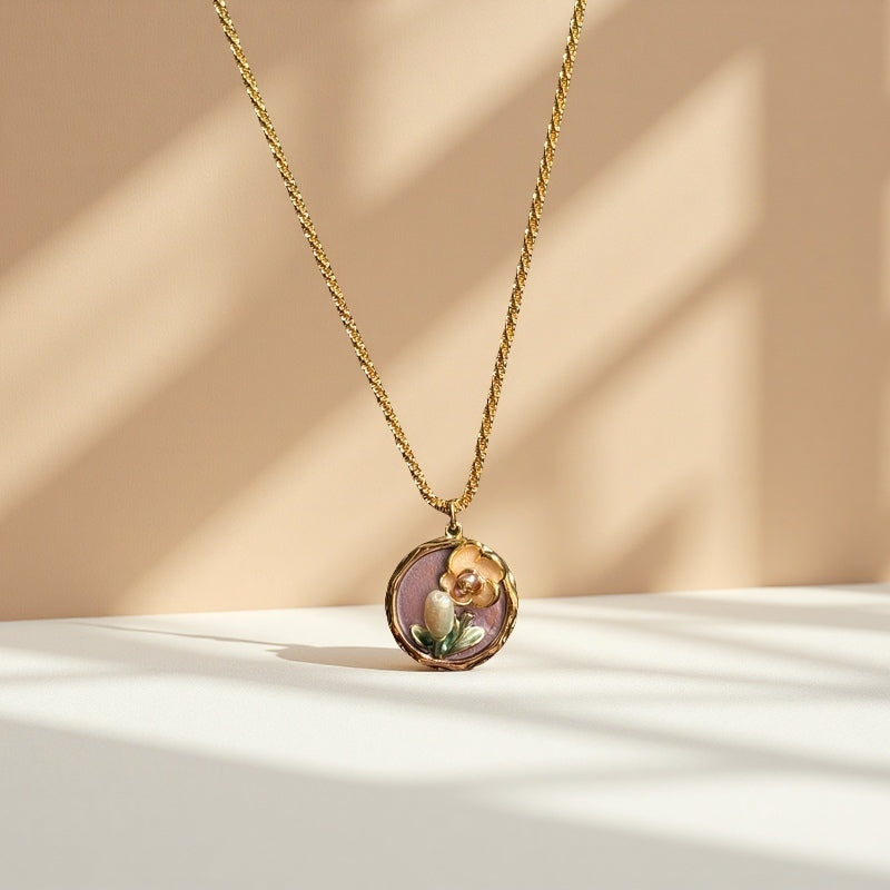 Monet's Garden, Elegant Enamel Oil Drop Pendant Necklace, Girlfriend Gift, Anniversary Gift