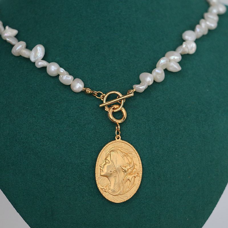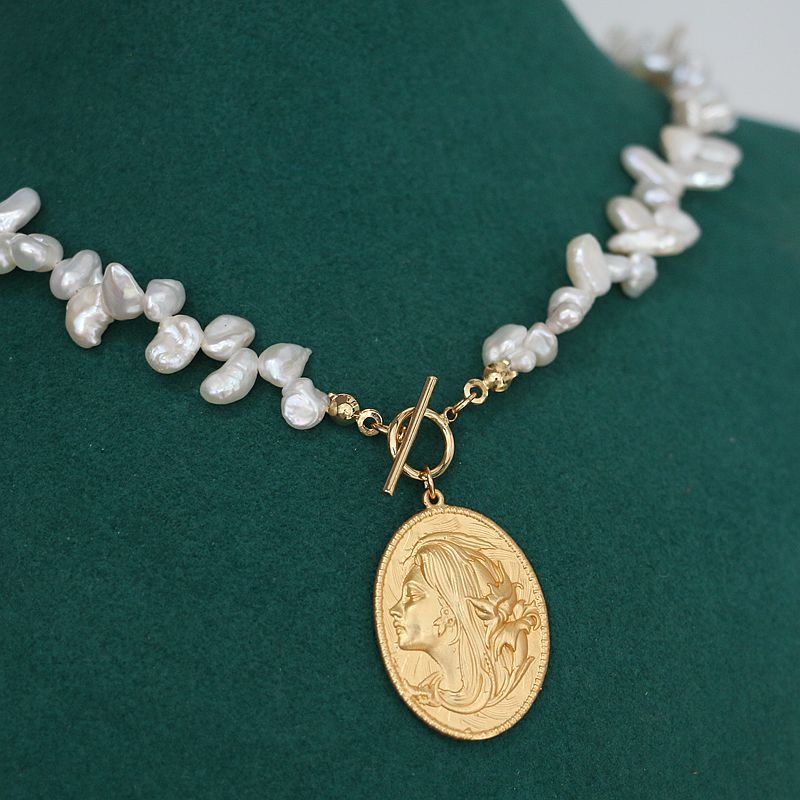 Product Description: Vintage Baroque Pearl Goddess Pendant Necklace